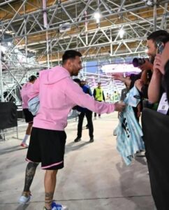 El medallista olímpico en Tokio 2020 estuvo en Miami en 2023, pero no pudo concretar un encuentro con el campeón del mundo. Esta vez, al menos a la distancia, pudo hacerle llegar al rosarino el especial regalo que, al parecer, le trajo suerte en el 2-0 ante Real Salt Lake.