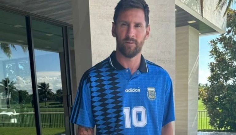 El futbolista de Inter Miami Lionel Messi compartió este domingo una foto suya en las redes sociales en la que se lo ve usando la camiseta que Diego Maradona utilizó en el Mundial de Estados Unidos 1994.