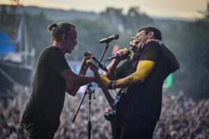 Ya a las 19.30, y frente a un escenario Norte colmado, Ricardo Mollo marcó el comienzo de uno de los shows más esperados de la noche: Divididos. Fiel al apodo con el que se la conoce hace décadas –la Aplanadora del Rock-, la banda salió a tocar un tema tras otro sin respiro, aunque el cantante hizo un alto para decir: “Mi deseo es que terminen los incendios, ahora en Entre Ríos y Corrientes, hace un tiempo en Córdoba y también en nuestra Patagonia querida. Creo que todos queremos lo mismo”.