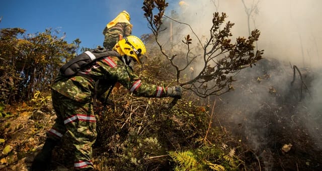 Las conflagraciones se presentan en cientos de municipios e incluso llegaron a los cerros orientales de la capital del país sudamericano, Bogotá, que requirieron la atención de socorristas en terreno y de helicópteros del Ejército y la Policía.