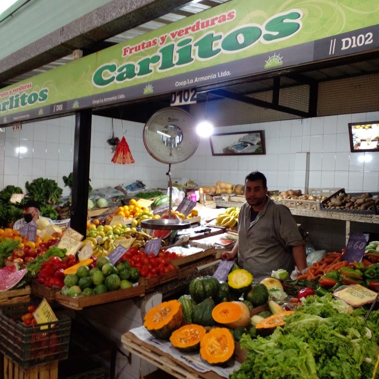 En primer lugar dialogamos con Javier del puesto de Frutas y Verduras “CARLITOS” quien nos dijo lo siguiente: “Por suerte estamos teniendo en estos momentos un buen margen de ventas, aunque ya no es como antes que la gente venia y pedía directamente sino que ahora primero se pregunta el precio y luego se pide. Para estos días de mucho calor las personas buscan mas las frutas, ya sea para hacer licuados, ensaladas de frutas, etc. Por eso tratamos de poner ofertas para atraer a los clientes ya que sabemos de la difícil situación económica que estamos pasando todos”