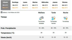 La ola de calor parece no tener fin en Santiago del Estero y se espera que este sábado 15 de febrero las condiciones sean idénticas a las de días anteriores. Máxima de 35 grados y probables tormentas aisladas durante toda la jornada son los principales datos que el Servicio Meteorológico Nacional (SMN) arroja sobre la provincia.