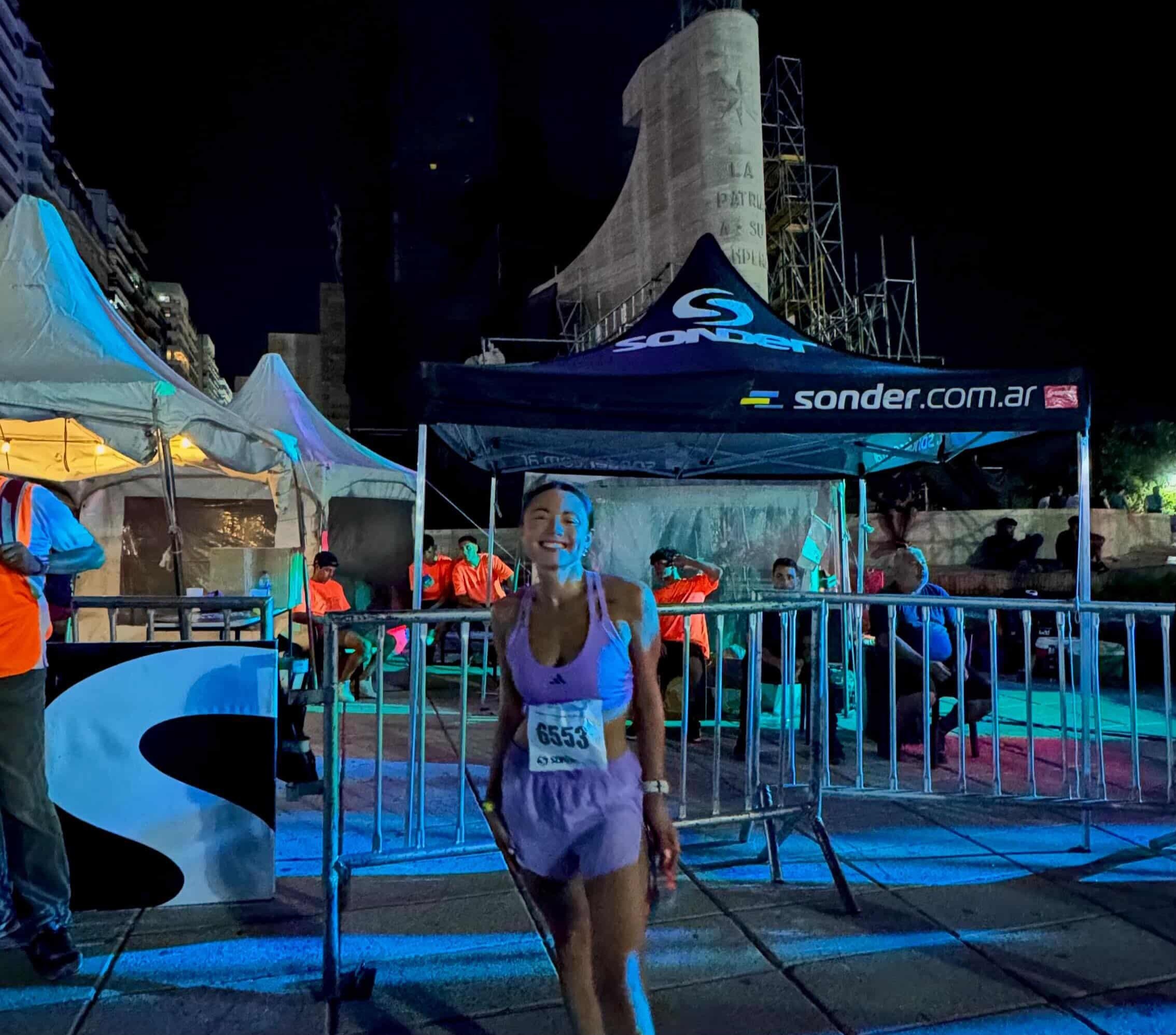 La atleta santiagueña tuvo una destacada actuación en la tradicional carrera Nocturna Sonder, donde debutó en la categoría élite y alcanzó su mejor marca personal. Su preparación estuvo marcada por el trabajo junto a su pareja, quien además fue su entrenador.
