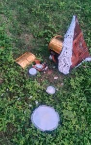 En el interior del templo se encontraron objetos litúrgicos tirados en el suelo, como recipientes y piezas metálicas utilizadas en las celebraciones, además del robo de ventiladores y otros elementos de valor.