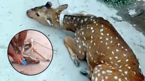 SORPRESA EN LOS TELEFÓNICOS: APARECIÓ UN CIERVO HERIDO EN PLENA ZONA URBANA