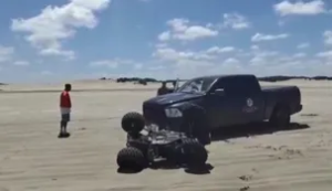 El impacto fue entre una Yamaha Raptor 700 y una Dodge Ram en la zona de médanos. En un video se escucha la desesperación de los presentes.