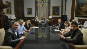 Participan del encuentro el ministro del Interior, Diego Santilli; la senadora de La Libertad Avanza, Patricia Bullrich; el asesor presidencial Santiago Caputo; el presidente de la Cámara de Diputados, Martín Menem; el armador del interior Eduardo “Lule” Menem; y el secretario de Asuntos Estratégicos, Ignacio “Nacho” Devitt.