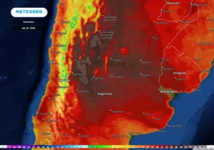 El mapa de calor muestra que, salvo La Rioja y San Juan, que tendrá máximas de 16° y 26°, el resto del centro y norte del país tendrá registros muy elevados.