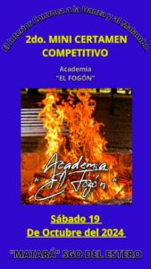 Ernesto Navarro anunció que el sábado 19 de octubre, a partir de las 15:00 horas, se llevará a cabo el 2º Encuentro y Mini Certamen Competitivo titulado “El Interior Convoca a la Danza y al Malambo”. Este evento será organizado por la academia “El Fogón” de Matará, Santiago del Estero, en un lugar que se confirmará próximamente.