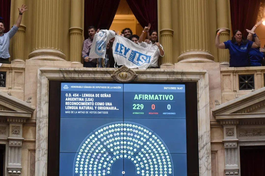 En este sentido María Valdiviezo, destacó : “La verdad, ayer fue un día histórico porque se aprobó una ley fundamental para el país; son años de lucha de la comunidad sorda que venía pidiendo que se apruebe la misma. Esta ley que reconoce la lengua de señas como lengua natural de las personas con esta discapacidad. Estamos muy felices y satisfechos por la aprobación que ahora se tiene que implementar”.