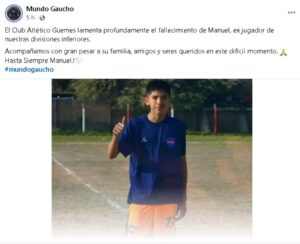 “El Club Atlético Güemes lamenta profundamente el fallecimiento de Manuel, exjugador de nuestras divisiones inferiores. Acompañamos con gran pesar a su familia, amigos y seres queridos en este difícil momento. ¡Hasta siempre, Manuel!”.