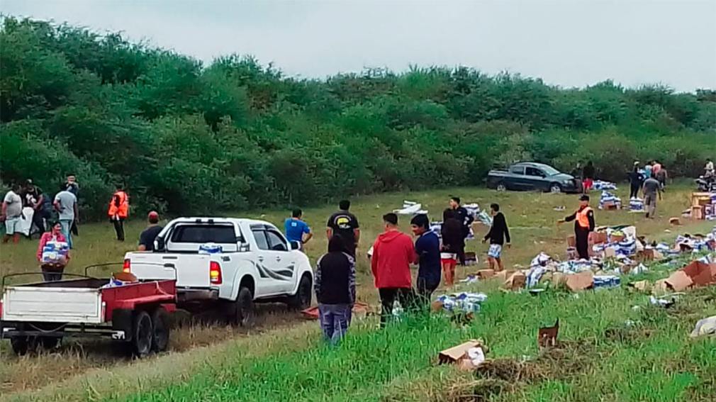 Tras el siniestro, la carga quedó esparcida a lo largo de la ruta, lo que generó una situación caótica: vecinos del lugar y automovilistas que transitaban por la zona aprovecharon para llevarse la mercadería.