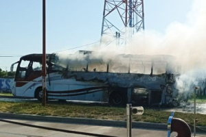 Se trata de la unidad perteneciente a la empresa “El Puntano” que había partido a las 05:30. Los pasajeros descendieron rápidamente y nada se pudo hacer, ya que la unidad se quemó por completo.
