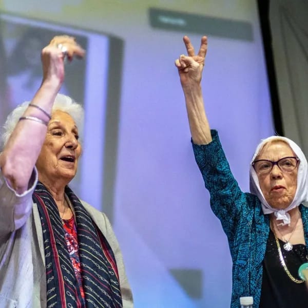 “Ambos pretenden reducir las atribuciones del Estado a su mínima expresión y avasallan nuestros derechos. Todos a la Plaza”, convocó la asociación presidida por Estela de Carloto.