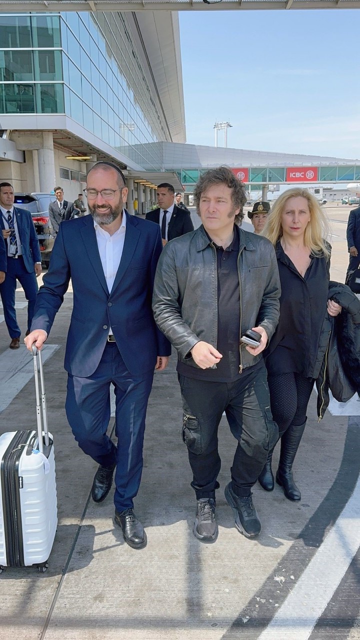 El jefe de Estado utiliza un vuelo comercial y viaja con una acotada delegación oficial: la canciller Diana Mondino, la secretaria General de la Presidencia, Karina Milei, y Axel Wahnish, designado embajador en Israel.
