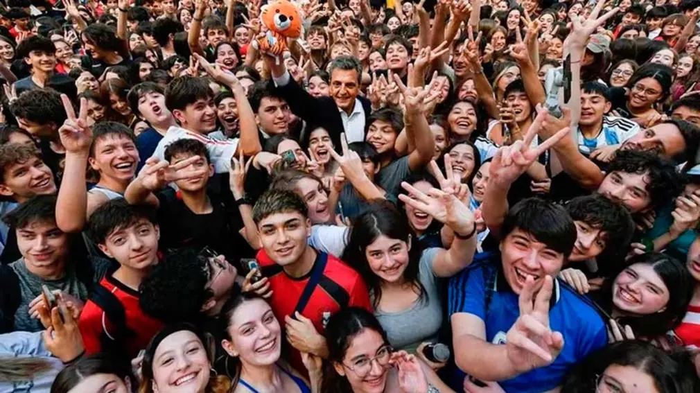 “Si me faltaba combustible y energía para llegar al domingo, me la dieron ustedes. Gracias, de corazón”. Sergio Massa cerró la campaña en el patio interno del Colegio Pellegrini, en el centro de la Ciudad de Buenos Aires, frente a cientos de jóvenes que lo rodearon para escuchar el último mensaje de campaña. El candidato de Unión por la Patria, de impecable traje, se paró en el centro, y después de tomar dos mates que le convidaron, inició el discurso de clausura a un extenso proceso electoral.