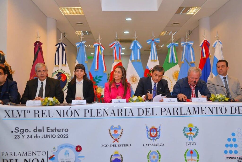 Como parte de la XLVI Reunión Plenaria del Parlamento del NOA que se realiza en la Cámara de Diputados de la provincia, los vicegobernadores Florencia López (La Rioja); Carlos Silva Neder (Santiago del Estero); Antonio Marocco (Salta); Sergio Francisco Mansilla (Tucumán); Rubén Dusso (Catamarca); Carlos Haquim (Jujuy); Analía Rach Quiroga (Chaco) y Eber Wilson Solís (Formosa), firmaron este jueves por la mañana el acta de integración para conformar el Parlamento del Norte Grande Argentino que también estará conformado por Corrientes y Misiones, y que será aprobada este viernes por el pleno reunido en asamblea.