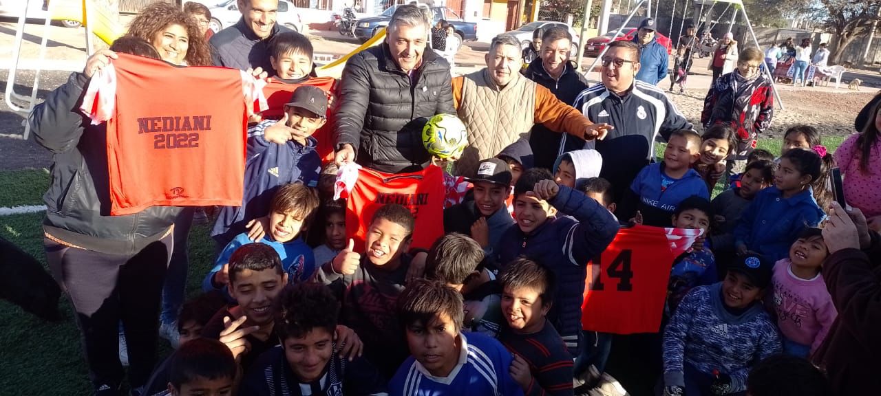 El Intendente Roger Nediani y el candidato ‘Ninja’ Montenegro estuvieron presentes en la inauguración de la canchita y paseo recreativo en el B° Los Lagos.